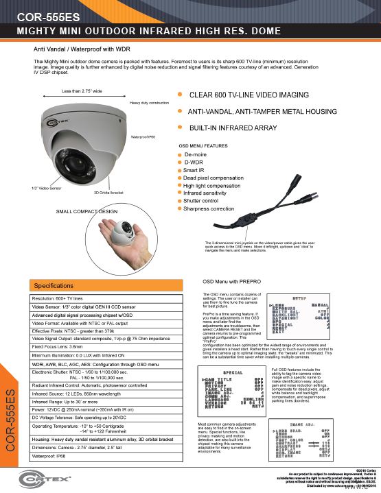 The Mighty Mini camera series incorporates advanced video processing functions that lift traditional CCTV video technology to a new level. Each member of this product line provides the user with crystal clear video images that can be modified using a variety of techniques.
